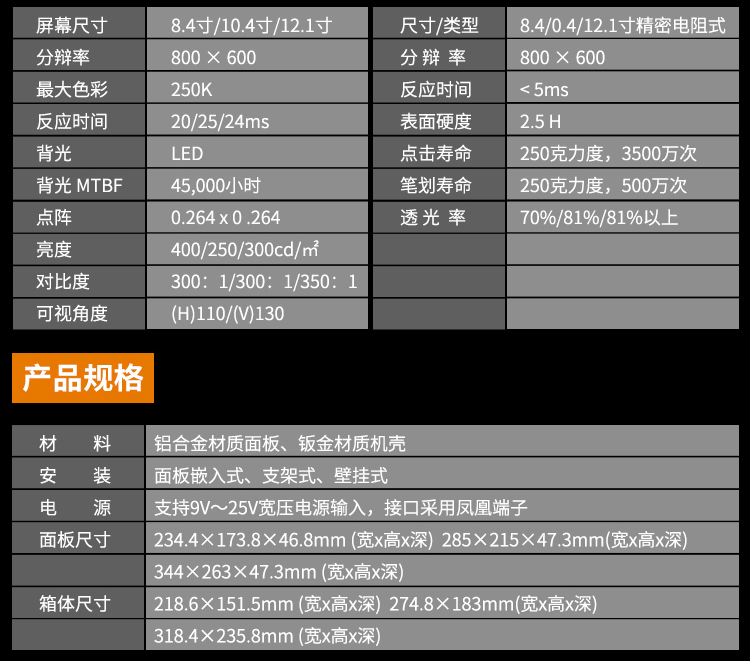 尺寸/类型:8.4寸 精密电阻式