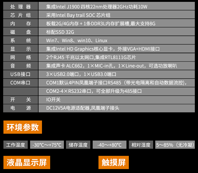 标配:10.4寸触摸鲸鱼体育直播,Intel N2930四核处理器,1.83G主频,4G内存,64G硬盘,分辩率800×600,