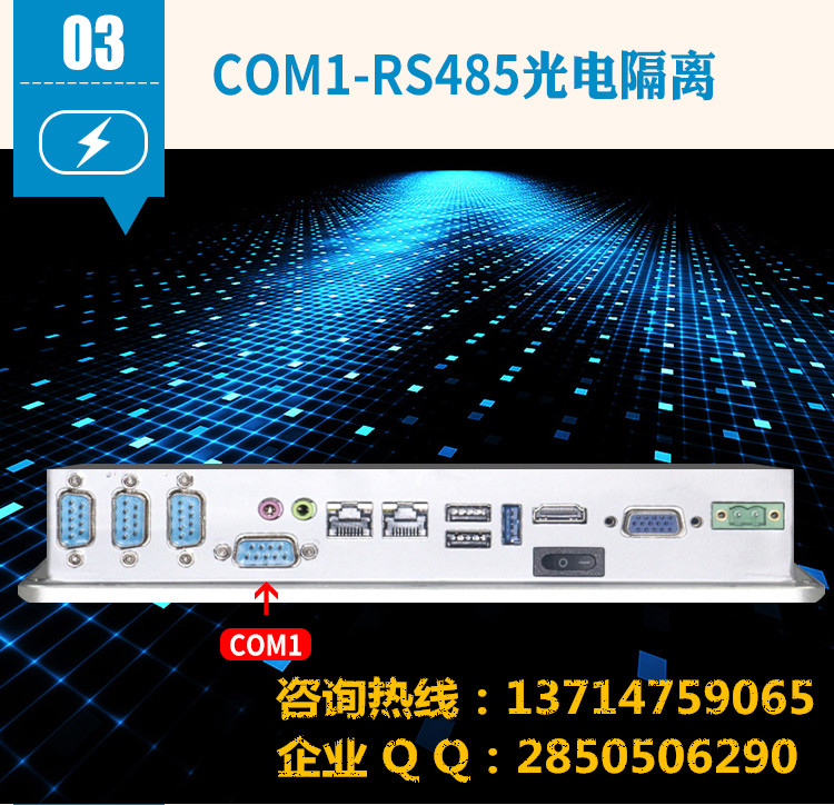 COM串口: COM1默认DB9接口RS485(带光电隔离和自动数据流控),