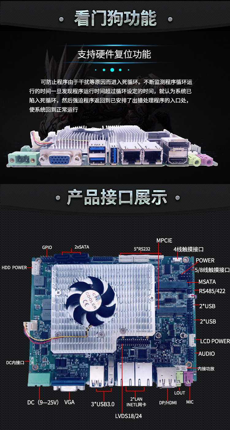 2个intel千兆以太网 ,2×MiniPCIE支持Wifi或3G模块