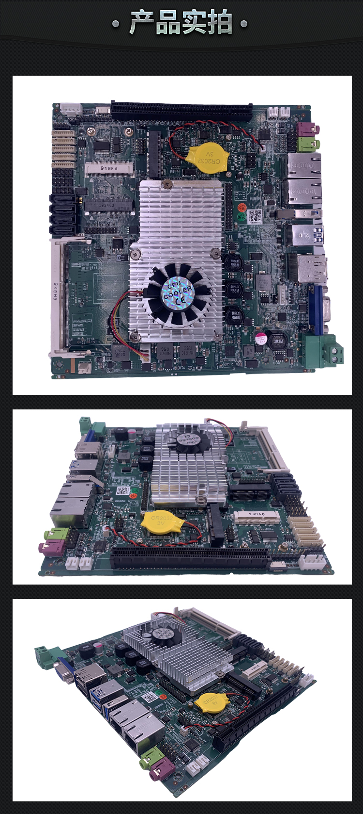 标准配件:5条COM线,1条SATA线,1条SATA电源线,电源接头,带风扇散热片。