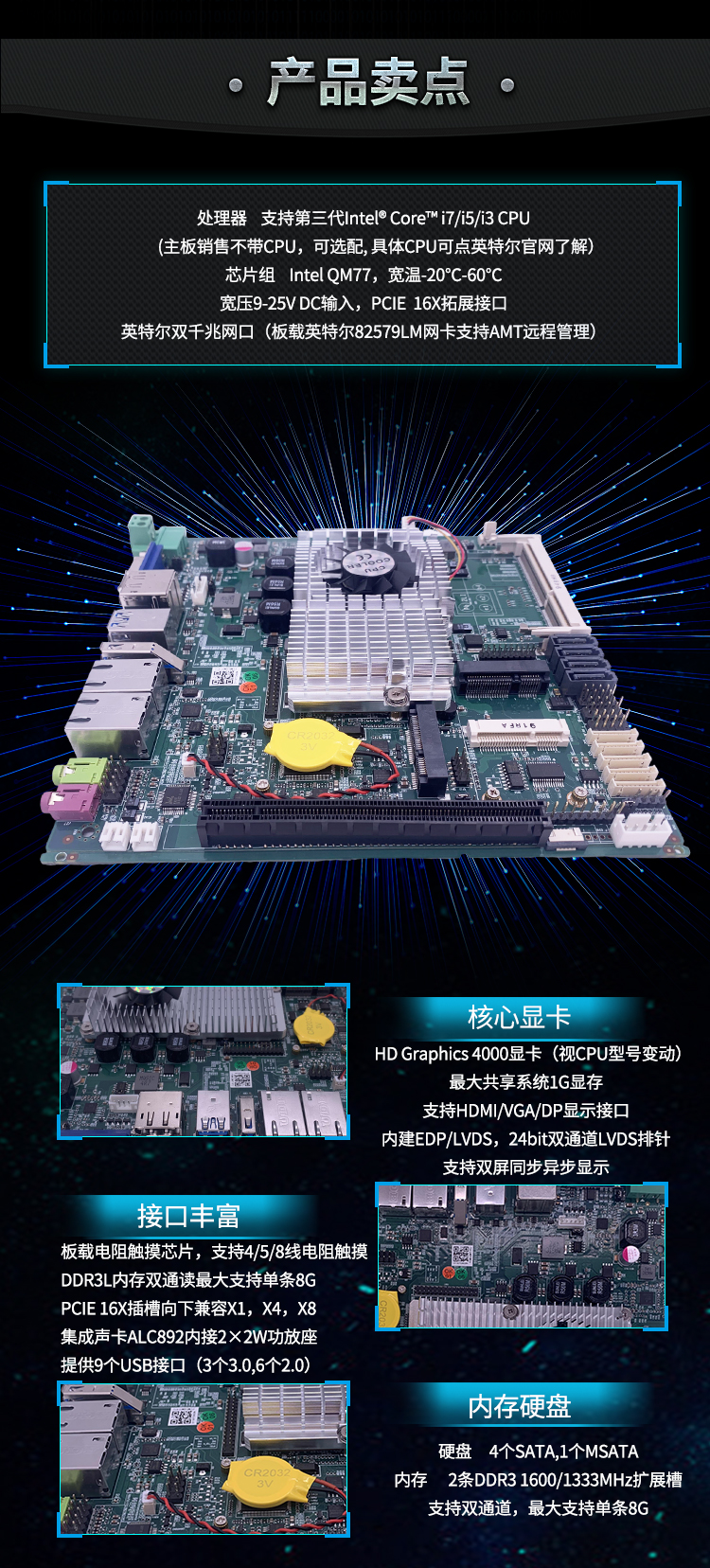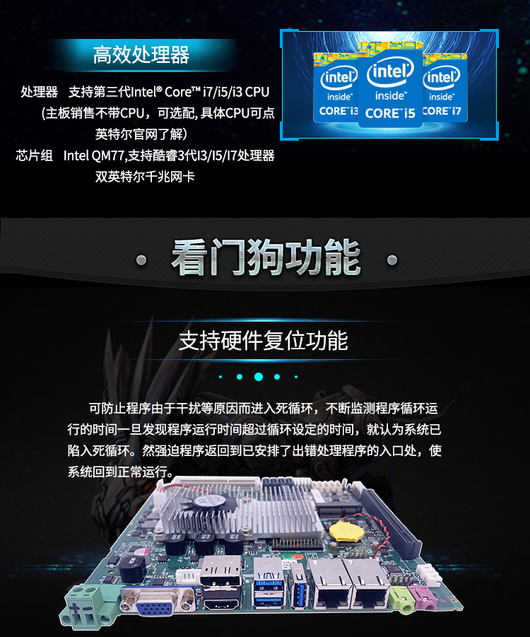 1. Intel QM77芯片组,可上I系列CPU,