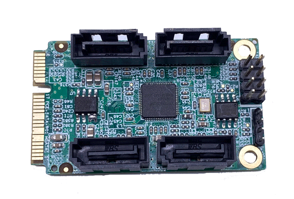 此板卡适用于通过Mini PCIe接口转出控制4个SATA3接口硬盘。