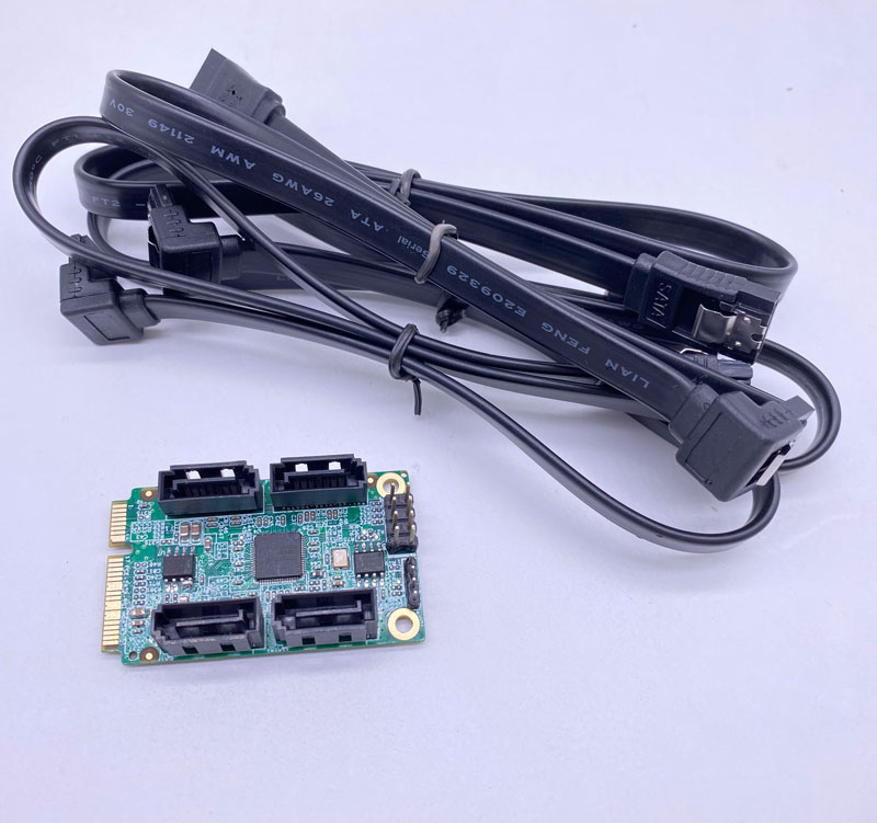 出四路SATA3.0接口,采用标准的Mini-Pcie全高板卡尺寸,方便安装