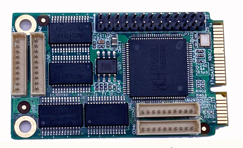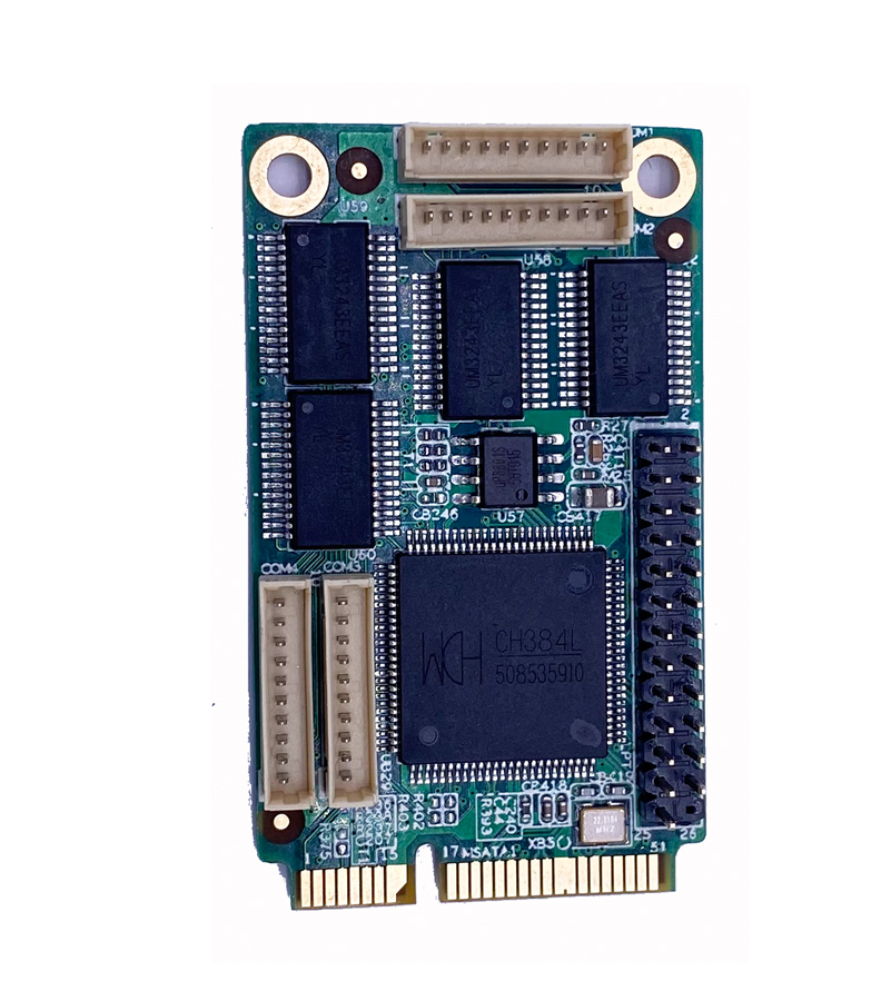PCE-COM(LPT)模块 高性能Mini-Pcie转4串口1并口卡,支持带Mini-Pcie卡槽的主板 扩展出4路高速COM-RS232接口和1路LPT并口,采用标准的 Mini-Pcie全高板卡尺寸,方便带有mini-pcie槽的设备安装使用。 支持Windows 98/NT4.0/2000/XP/VISATA/7/8/8.1/10/ Server 2003-2016 32/64-bit, Linux,DOS等操作系统