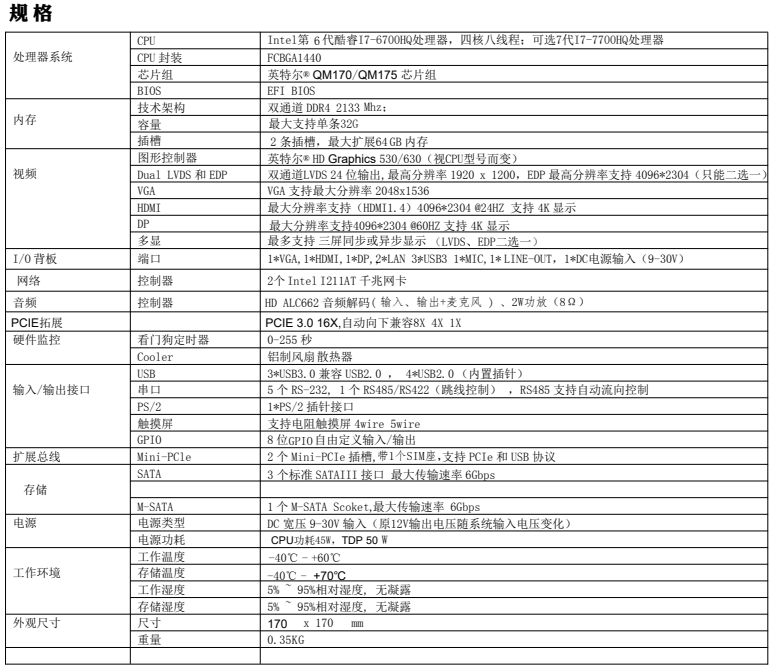 ◆ 结构 MINI-ITX 架构 170 x 170 mm;