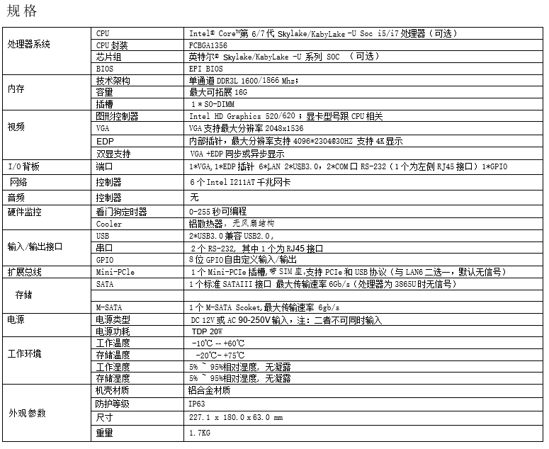 集成 Intel 第 6 /7 代移动 Skylake/KabyLake-U 单芯片 CPU