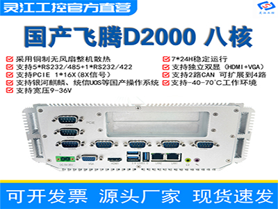 宽温宽压全国产化飞腾D2000八核支持独显PCIE16xCAN工控机6串口