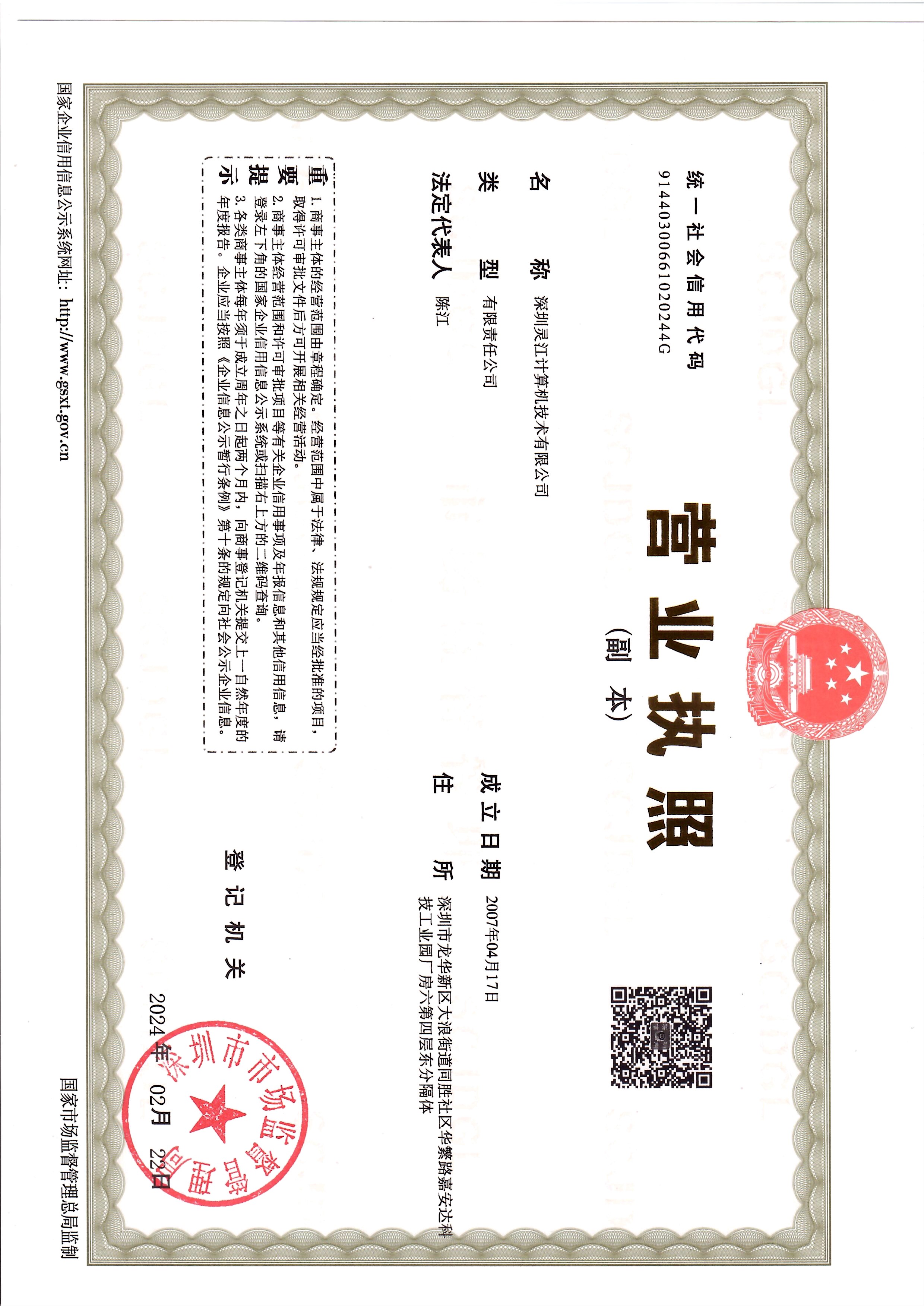 2024年公司营业执照更新