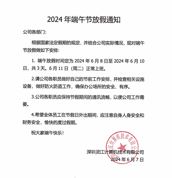 2024 年端午节放假通知