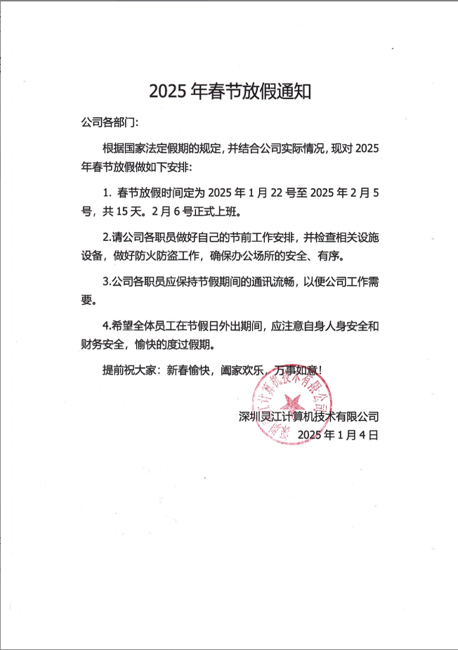 2025年春节放假通知