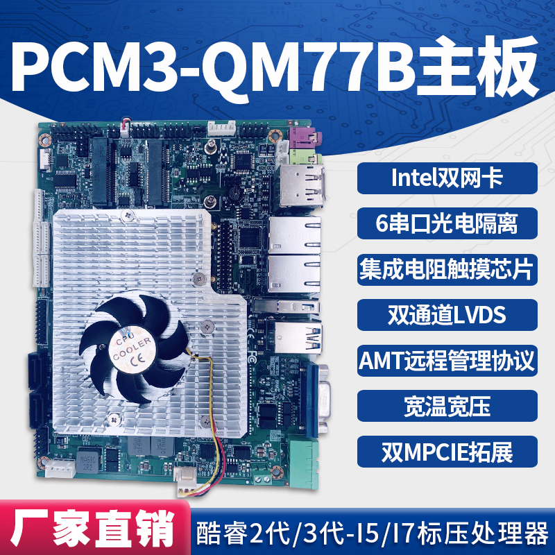 宽压9V~25V,支持硬件来电开机 基于Intel QM77 芯片, 集成Intel i5-2430M(可选i5-2410M) CPU 板载2G内存或4G内存和1条DDR3 1600/1333内存插槽,最大支持8GB 支持DP+HDMI,LVDS和VGA显示输出; 2个intel千兆以太网 ,2×MiniPCIE支持Wifi或3G模块 3× USB3.0 + 4×USB2.0 2× SATA(其中1个为SATA3.0),1× MiniSATA 6×COM ( 5×RS232,1×RS485带光电隔离) 支持4线、5线、8线触摸功能
