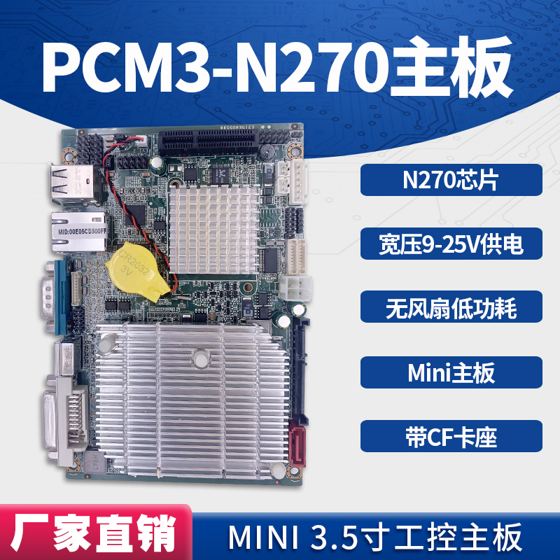 型号:PCM3-N270 1、英特尔凌动N270处理器,低功耗1.6G主频 2、外接1×LAN、2×USB、1×COM、1×DVI、1×PS2 3、支持DDR2 内存,最大支持2G 4、支持2.5寸笔记本硬盘、CF卡 5、无风扇散热、宽温-20℃~70℃